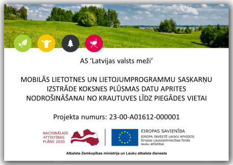 AS "Latvijas valsts meži" kā vadošais partneris kopā ar sadarbības partneriem īsteno projektu “Mobilās lietotnes un lietojumprogrammu saskarņu izstrāde koksnes plūsmas datu aprites nodrošināšanai no krautuves līdz piegādes vietai”.